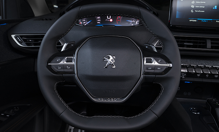 Vô lăng Peugeot 3008 2022 sử dụng loại vô lăng 2 chấu dạng “mai rùa” bọc da, tích hợp một số nút bấm thường xuyên sử dụng để lái xe có thể dễ dàng thao tác khi điều khiển xe.